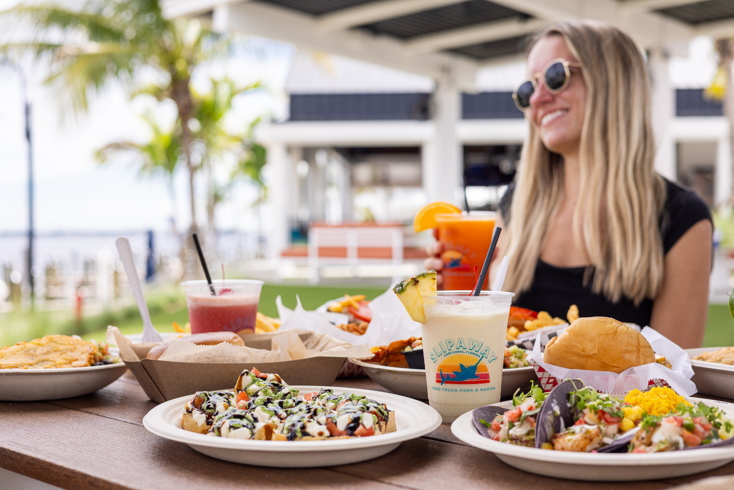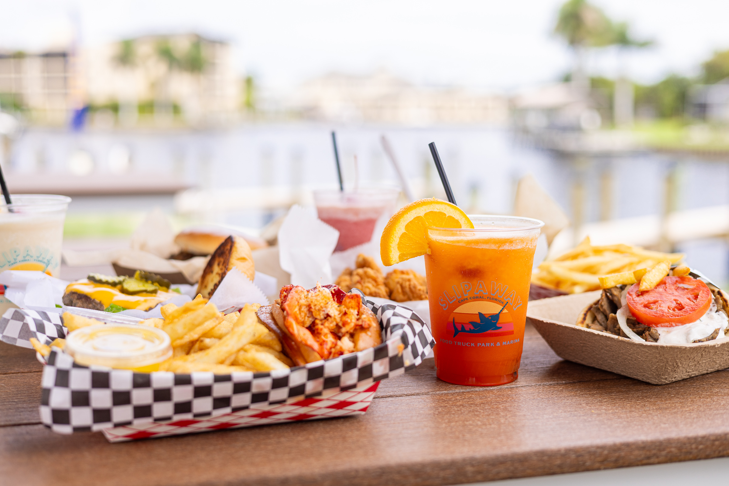 Located at the foot of the Cape Coral bridge on the beautiful Caloosahatchee River, Slipaway Food Truck Park & Marina in Cape Coral offers 10 unique food trucks with boat access, waterfront dining, full bar, live music, fuel dock and ship store. Whether you slip into our dock to fuel your boat or slip into our food truck park for outdoor dining, you’ll discover a friendly and celebratory atmosphere with a river view is always on the menu.